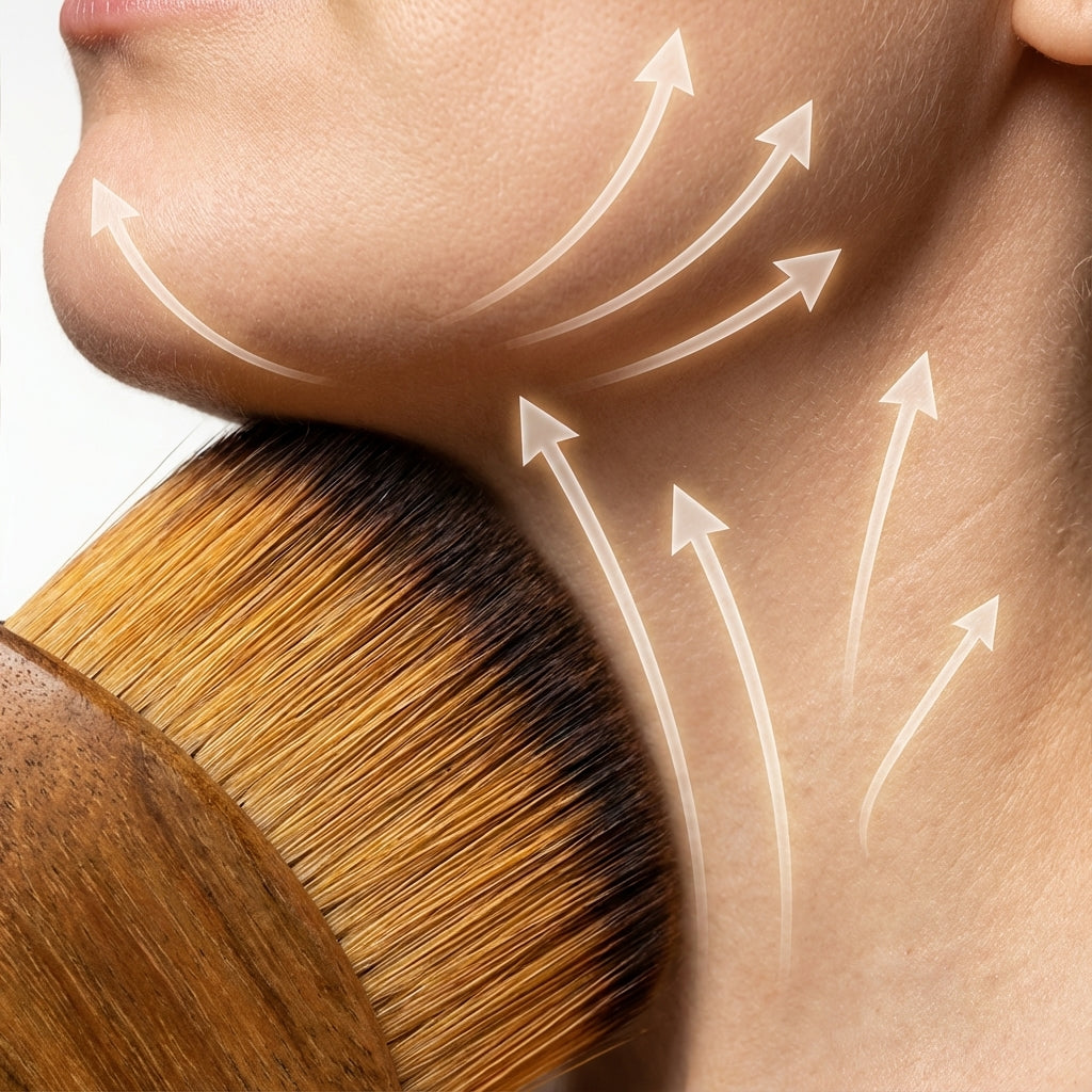The gentle tension and directional gliding created by the hairs stimulate the superficial lymphatic layer just beneath the skin. Fluid circulation accelerates, puffiness decreases, and facial features become more defined.